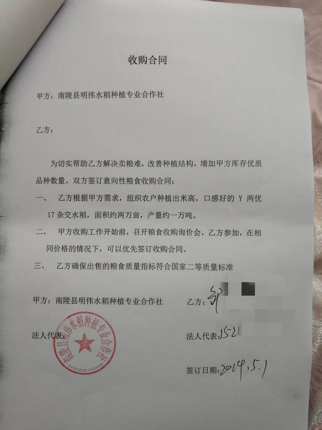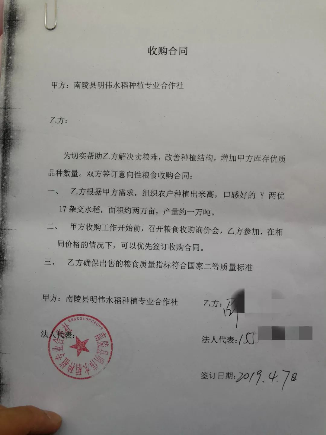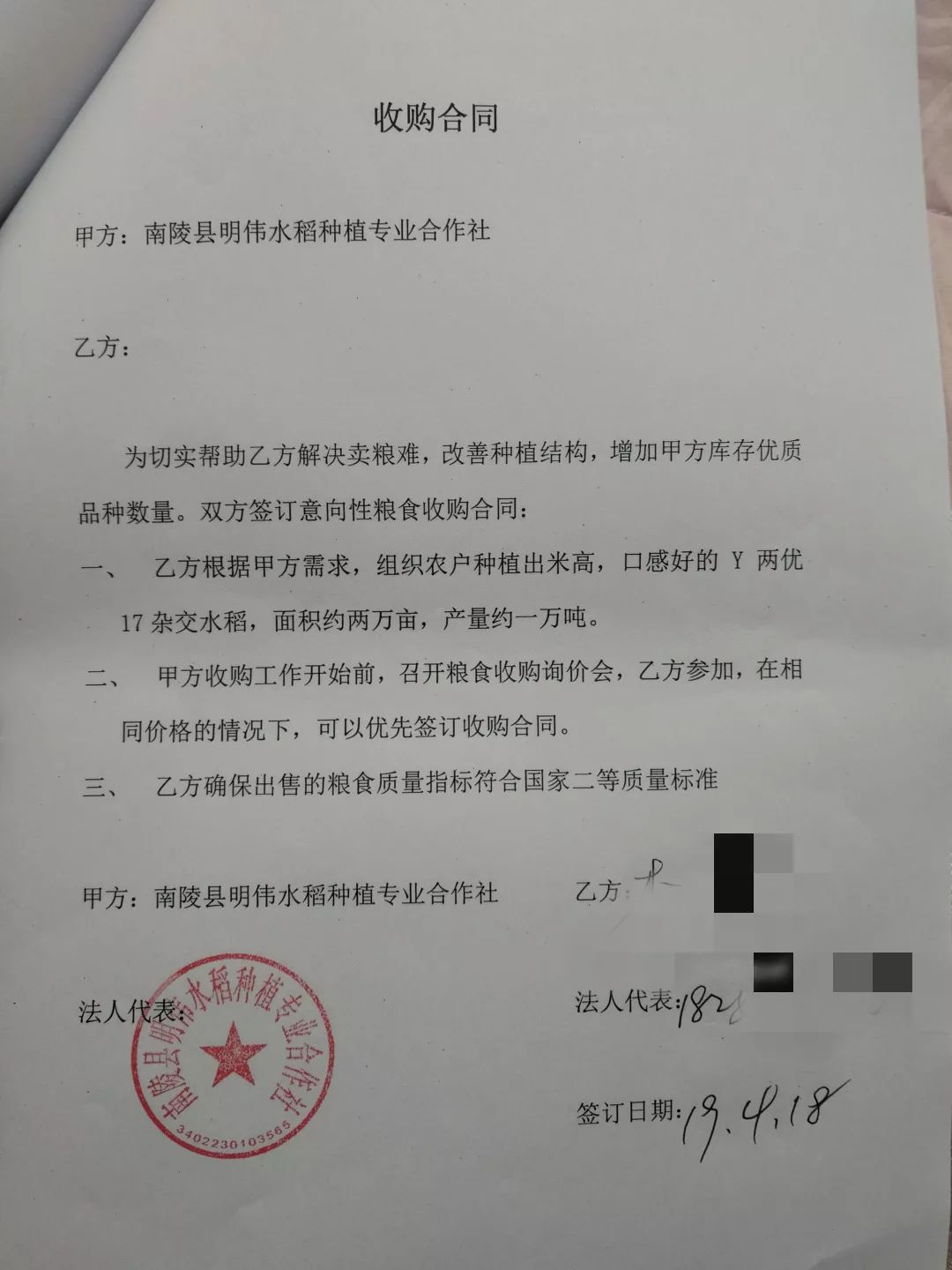 合作社與種植大戶簽訂的定向收購協(xié)議,種植大戶們紛紛表示,種植Y兩優(yōu)17,底氣就是足!