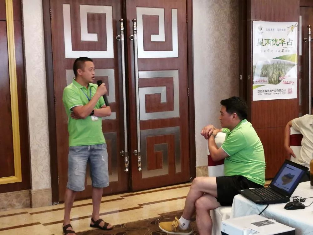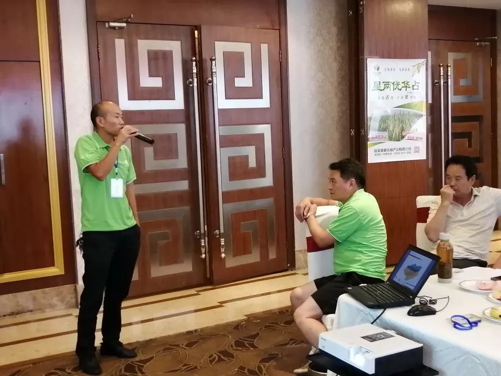 室內(nèi)會議上,安徽袁糧鮑士倫總經(jīng)理給大家詳細(xì)介紹袁糧水稻公司的現(xiàn)在與未來,并由表入里的分析當(dāng)前的市場困境及發(fā)展趨勢;銷售經(jīng)理梅玉林用獨特的說文解字加毛主席語錄的方式給大家愉快的傳遞了公司營銷理念并分享了星華占在其他省份的優(yōu)秀表現(xiàn)。
